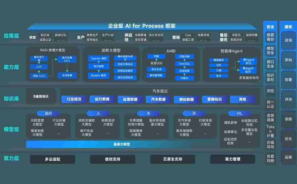 尊龙凯时问学智车解决方案是一套基于AI技术的汽车行业智能化系统,,,覆盖从底层算力到顶层AI应用的全栈方案。。方案由算力层、、模型层和应用层组成:算力层,,方案支持多种一体机配置,,,具备云端灵活部署、、多云适配以及动态优化计算资源的能力;模型层,,,尊龙凯时问学平台版提供了企业级AI应用一站式构建与管理平台,,,,支持基于后训练强化技术的汽车企业专属模型的训练、、、、评测和运营;应用层,,尊龙凯时问学DeepSeek版提供包括超级员工、、智能招采、、、、智能营销、、、智能客服、、、、AI for BI等一系列解决方案,,可助力汽车行业实现数字化转型,,,,让管理更智能、、响应更敏捷。。。。